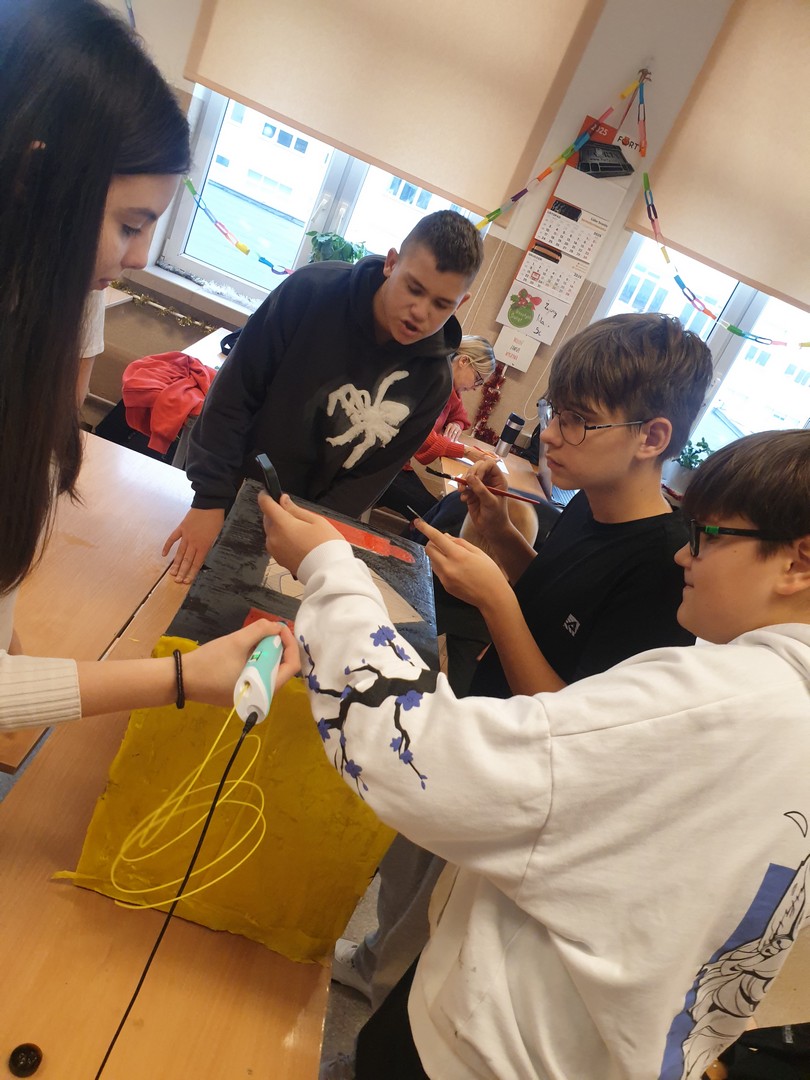 II grupa przygotowała model katarynki, czyli przedmiotu odgrywającego kluczową rolę w utworze. Praca ta pozwoliła uczniom lepiej zrozumieć symbolikę katarynki oraz jej wpływ na losy bohaterów.